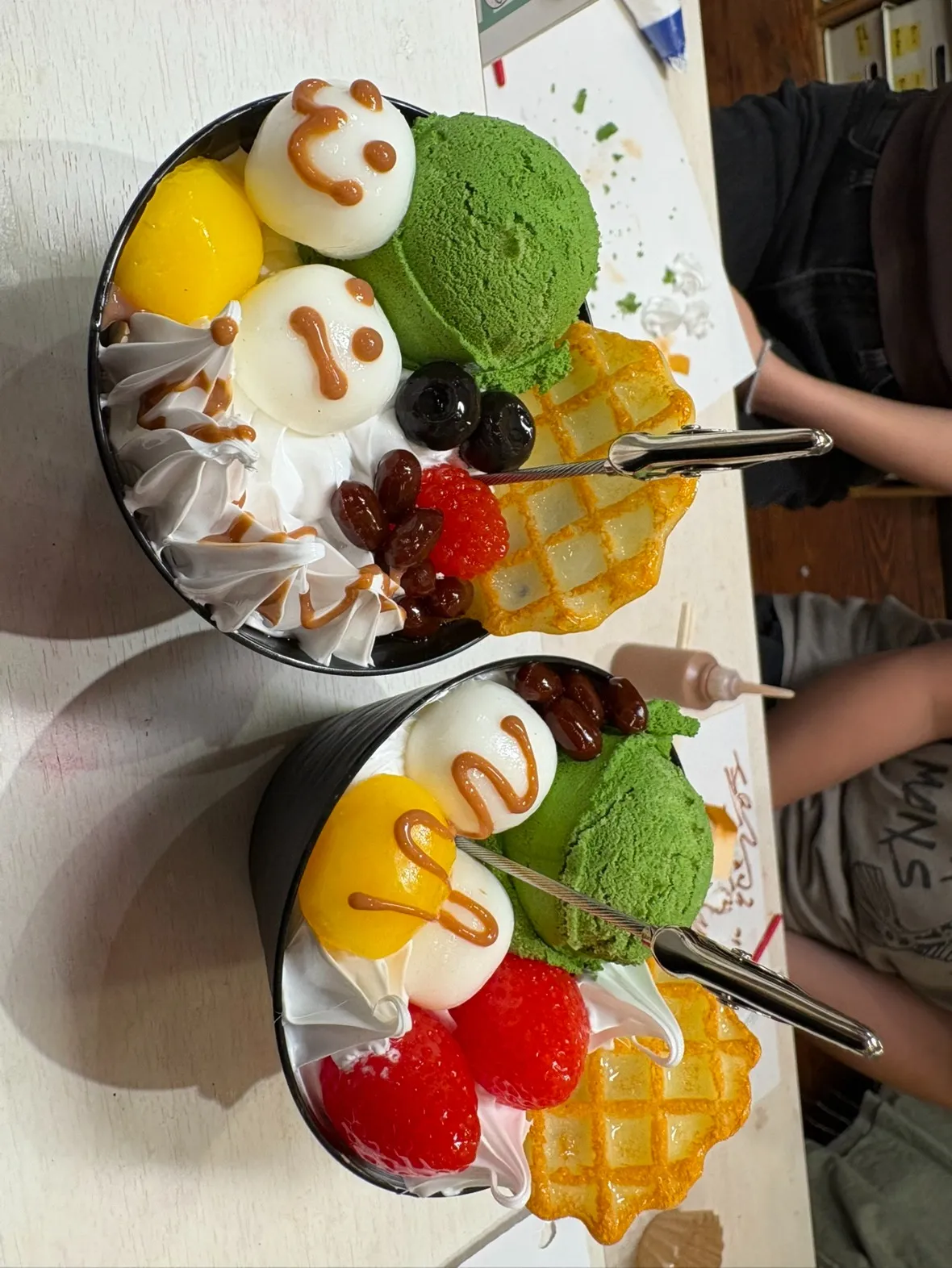 クリームやアイスをのせて、どんどん仕上げていく中で…