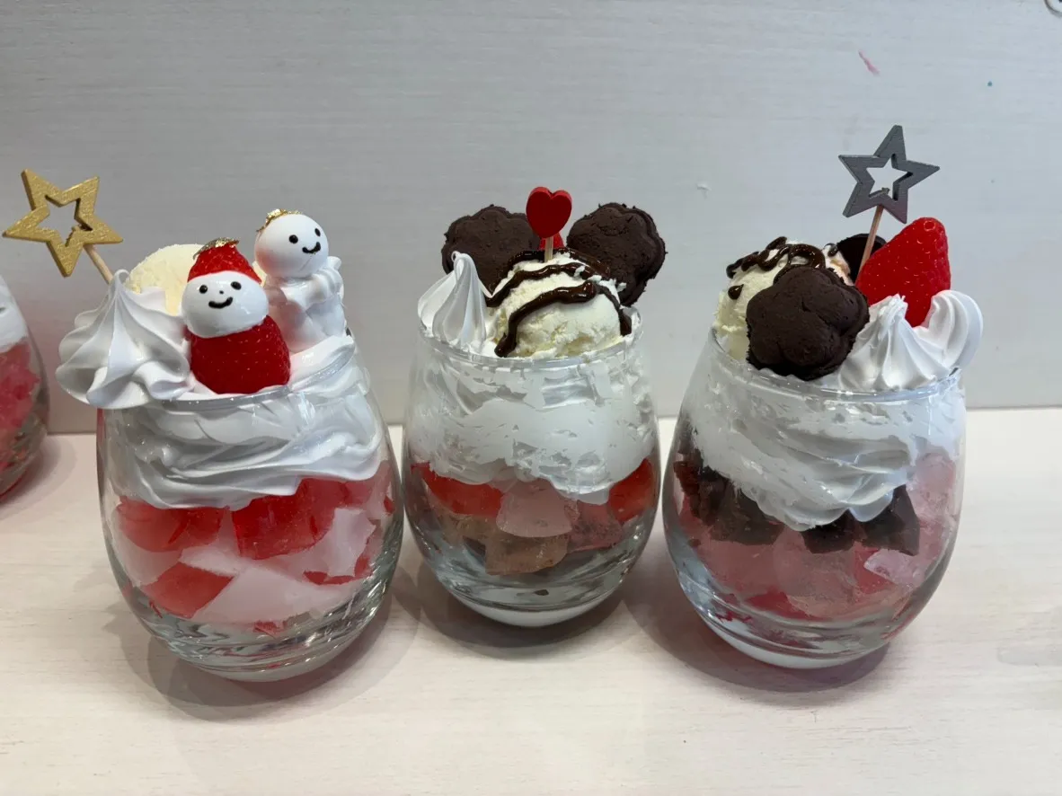 店舗での制作体験 親子3人で冬パフェ まいど~!ぽっけくんやで~!今日はな、めっちゃ素敵な親子3人組が「冬パフェ作り」に挑戦しに来てくれはってん!まずびっくりしたんが、選んだスタイルからすでにご家族の個性がバチッと出ててな~!お…
